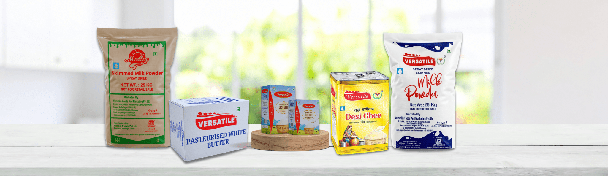 Versatile Foods and Marketing delivers premium dairy essentials. We specialize in authentic desi ghee, creamy versatile butter, and high-protein versatile SMP, ensuring purity for our customers and B2B partners.